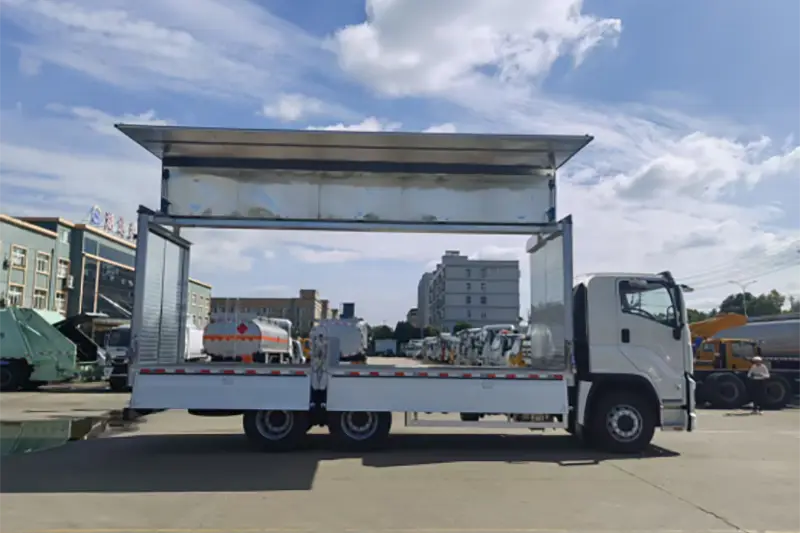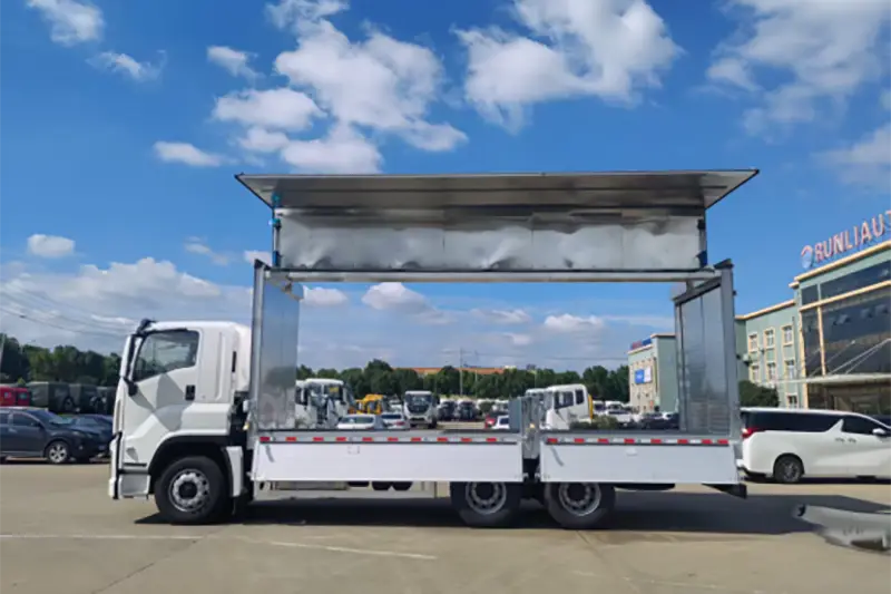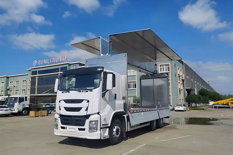 Runli Aluminium Alloy Wingspan Truck, även allmänt känd som en skåpbil med vingöppning eller sidofällbar lastbil, är en högpresterande speciallastbil modifierad från äkta Isuzu 6X4-chassi, uppgraderad för att lösa den låga lastnings-/avlastningseffektiviteten för stor, tung och överdimensionerad last. Till skillnad från traditionella bakre öppningsbara lådbilar, viks dess sidopaneler och halvtak hydrauliskt ut som vingar, vilket skapar en rymlig tredimensionell lastyta som stöder hantering i flera riktningar från sidan, fram och bak. Det är ett centralt logistiktransportverktyg som används i stor utsträckning inom global bulklastdistribution, leverans av industriutrustning och frakt av jordbruksprodukter, vilket perfekt balanserar lastskydd och hanteringseffektivitet för internationella grossistköpare och dedikerade logistikföretag.